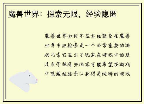 魔兽世界是一个庞大而复杂的游戏世界,试玩角色在升级过程中需要不断学习和提升自己的游戏技巧和战斗能力。可以通过阅读游戏指南、观看游戏视频、参加游戏讨论等方式获取游戏知识和经验。要保持积极的学习态度和探索精神,不断尝试新的游戏内容和挑战,提高自己的游戏水平和战斗技巧。